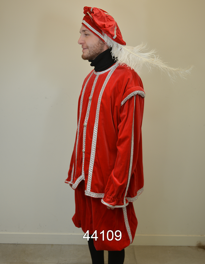 Deze door ons zelf geproduceerde pieten kostuums zijn gemaakt van de echte Niedeck kledingfluweel met de gouden draad, en rijkelijk versiert met goud galon.